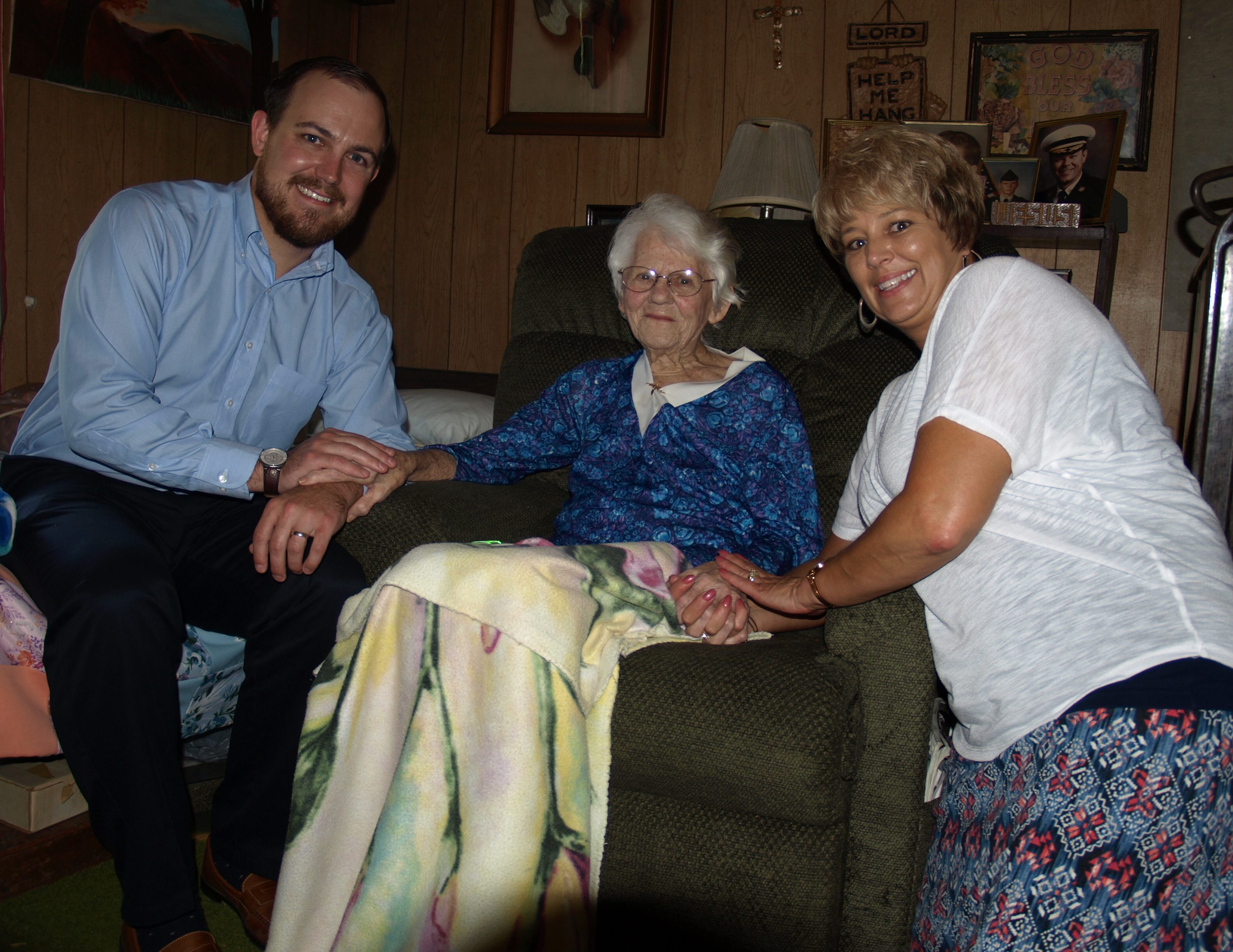 OLYMPUS DIGITAL CAMERA Published September 11, 2015 at 3156 × 2436 in Banking Together For Generations: The McGlaughlin Family’s Rich History VCNB Retail Banking Officer Tom Oyer and Retail Accounts Officer Brenda Brooks visited Laura McGlaughlin in her home this summer.